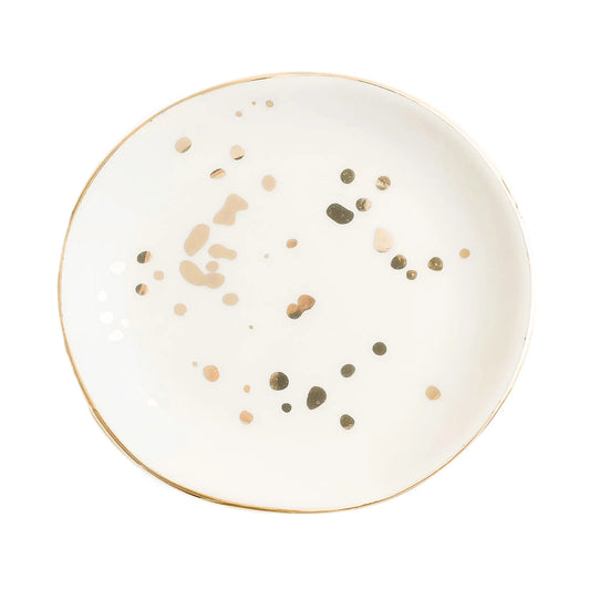 Speckled Jewelry Dish - White and Gold Foil - 4x4"